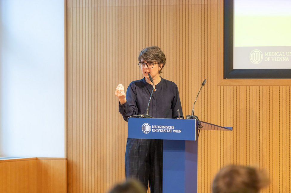 Nach der Eröffnung der Veranstaltung durch die Projektleiterin Nicole Boucheron hielten zwei renommierte Wissenschaftlerinnen der MedUni Wien öffentliche Vorträge zum Thema Immunsystem: Ursula Wiedermann-Schmidt sprach übers Impfen und Marta Rizzi erzählte den Anwesenden von ihrem Forschungsgebiet, den B-Zellen. Nach den Präsentationen gab es zahlreiche Fragen und eine angeregte Diskussion mit dem Publikum, das hauptsächlich aus Schüler:innen bestand.