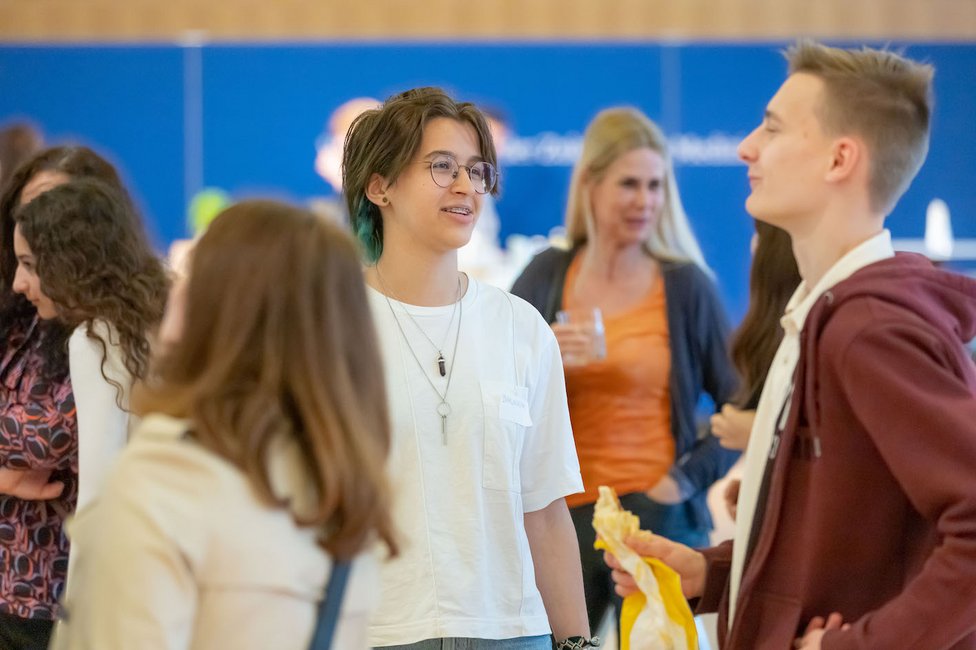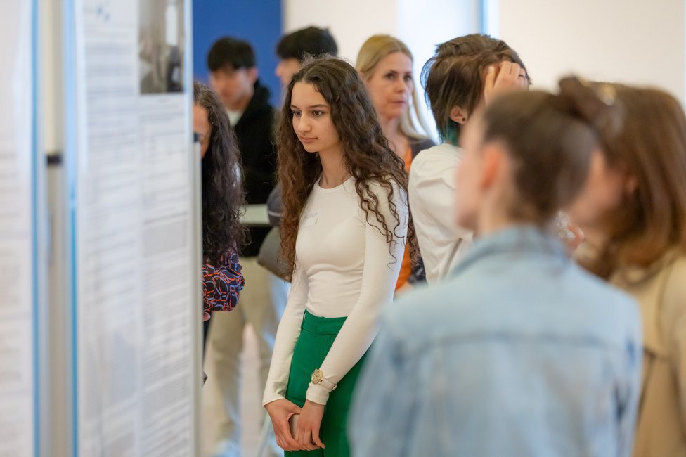 Nach den Vorträgen gab es eine kurze Pause mit einer Stärkung am Buffet. Einige nutzten während dieser Zeit auch die Möglichkeit, sich auf Posterwänden Bilder und Infos zu den Aktivitäten aus dem Projekt anzusehen. Danach wurden die Social Media-Beiträge der Schüler:innen präsentiert, die im Rahmen des Projekts entstanden sind. Sie konnten das Publikum begeistern und wurden mit großem Applaus honoriert.