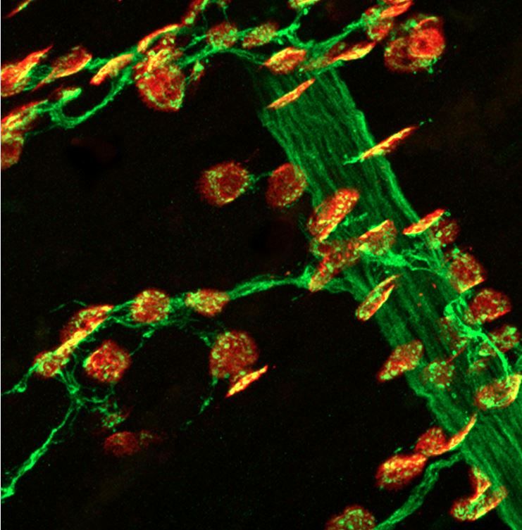 In particular, we study the receptor tyrosine kinase MuSK, the key regulatory factor during the development of the neuromuscular junction. Activation and concentration of MuSK at the junction represent the critical events during the development of the neuromuscular junction. Defects in MuSK function cause severe muscle disorders such as myasthenia gravis and congenital myasthenic syndromes. Signal transduction events downstream of MuSK lead to pre-and postsynaptic differentiation. Our research focuses on the role of MuSK during neuromuscular junction development.